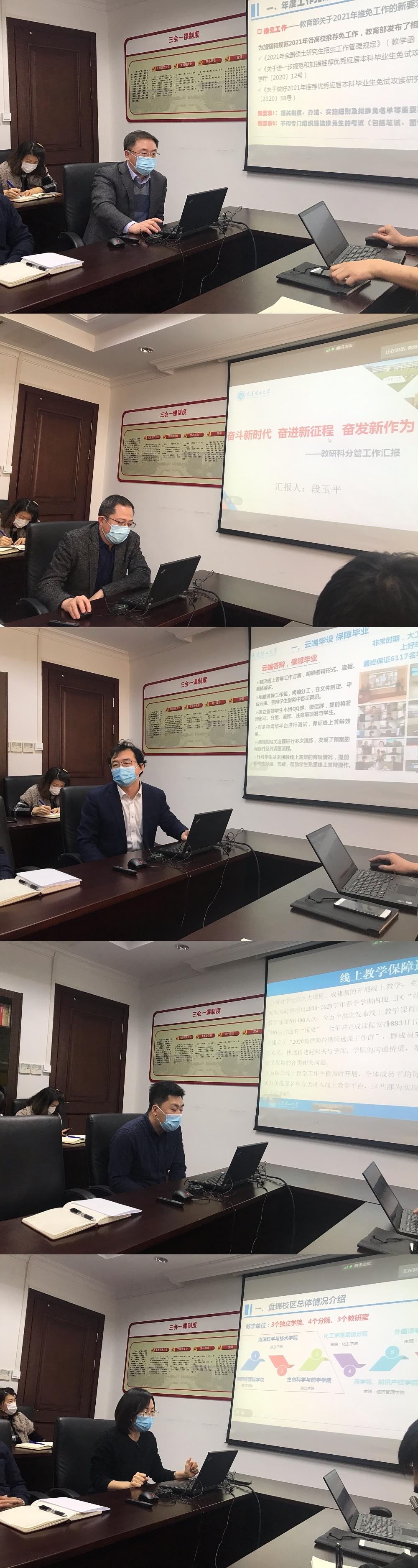 教务处处长刘志军对教务处2020年整体工作做了简单介绍,并对一流本科建设工作进行了年终盘点。他指出,在教务处全体成员的努力下、在全校师生的全力配合下,我们稳住了教学、保障了毕业、延续了学业,学校一流本科建设取得重大进展,为一流大学中期评估和第五轮学科评估挥洒浓墨重彩的一笔。