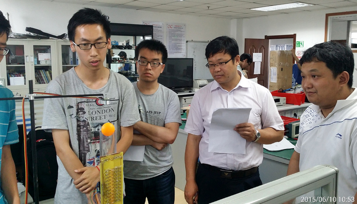 2015年6月10日,创新实验学院组织校内专家对参赛作品进行了现场验收,详细评测了各赛题的完成情况,并以题目完成的方案、功能、性能指标以及报告作为评分标准,评选出了一等奖、二等奖、三等奖作品共49件。