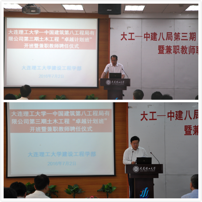 为贯彻落实《国家中长期教育改革和发展规划纲要(2010-2020年)》提出的创立高校与科研院所、行业、企业联合培养人才的新机制的要求,教育部2010年正式启动实施了卓越工程师教育培养计划(简称“卓越计划”)。卓越计划的核心是校企联合培养人才,重点是提升高校学生工程实践能力。为此,2014年6月在我校正式成立了大连理工大学—中国建筑第八工程局有限公司“卓越计划班”,去年是第二期,今年是第三期“卓越计划班”。通过这几期土木工程“卓越计划班”培养,学生的专业基础知识得到了显著升华,工程实践能力有了极大提高,丰富了校企实践教学内涵,强化了校企合作的纽带关系,相信大连理工大学--中国建筑第八工程局“卓越计划班”会越办越好,未来将有更大的提升空间和发展前景,更好地服务于“卓越计划”的人才培养。