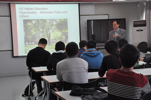 报告内容主要涉及美国大学的教学管理体制、组织形式、运行特点,以及美国录取学生主要政策、流程的介绍,及其他教师和学生共同感兴趣的美国高校教学情况。赵教授语言风趣幽默、言简意赅,清晰明了地介绍了申请美国高校的相关问题,诠释了中美高等教育的不同和美国私立与公立高校的不同,为我校教学研究、教学改革和精英人才培养提供了有益的参考。