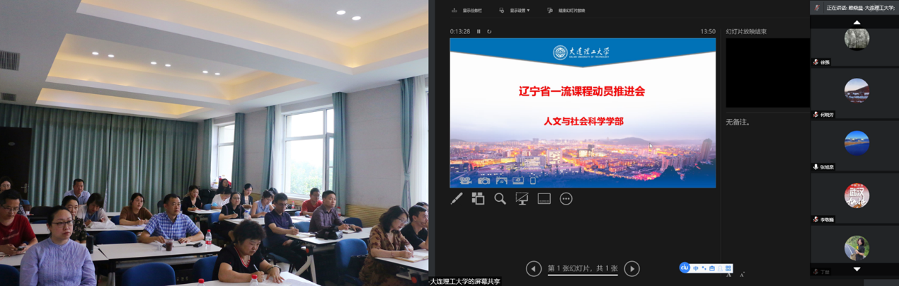 为贯彻落实《关于一流本科课程建设的实施意见》要求,全面推进一流课程建设,帮助学部教师提高课堂教学质量,助力推进第三批辽宁省一流本科课程申报,7月15日下午,人文与社会科学学部在厚德楼610召开辽宁省一流课程动员推进会。会议邀请软件学院赖晓晨、人文学部卢小君、宋悦华、于雪、武文颖五位老师介绍一流课程申报的评审要点,分享国家级一流课程申报的经验体会,并通过腾讯会议进行线上直播,人文学部部长李伦出席会议,副部长武文颖主持了本次推进会。