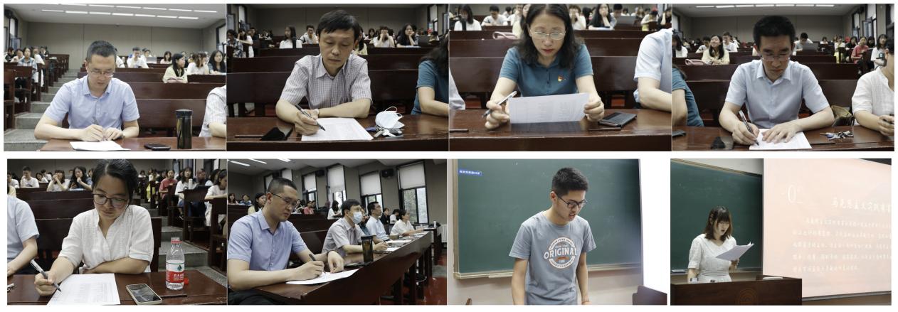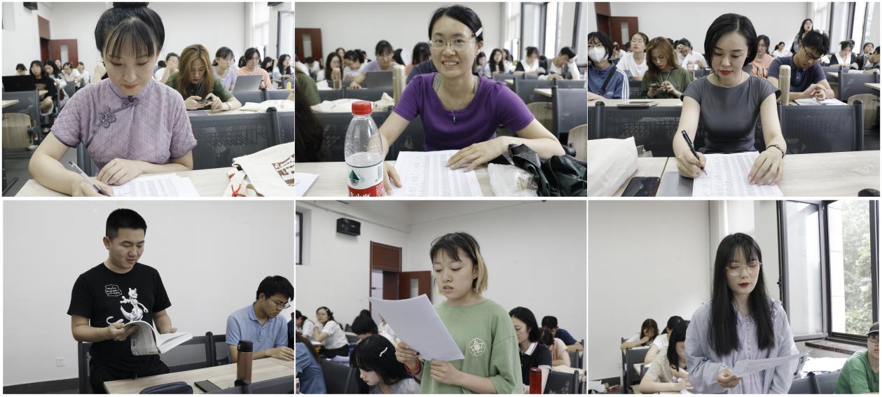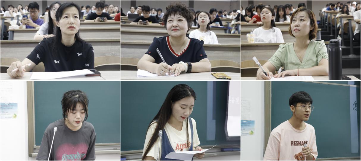 7月12日上午9点,一馆204,中文系闫华、王琦、谌幸三位老师,和大一66人参加了本次活动,汇报围绕《诗词格律概要》、《语文常谈》、《柏拉图文艺对话录》、《美的历程》、《艺术哲学》五本书,学生结合自己撰写的读书心得,老师提出的思考题,进行现场分享。同学们对诗词韵律、现代诗歌与古代诗歌的演变、精神文化的制约因素、艺术创作的灵感和中国古代各个时期对美的理解等问题畅所欲言,老师针对同学们的观点进行提问和点评。“你写诗了吗?有空可以一起交流哦!”老师们亲切的与同学们交谈,现场讨论气氛浓烈。