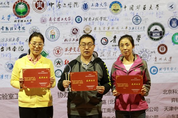 右二:邹龙江教授代表我校领取团体第三名奖杯及证书