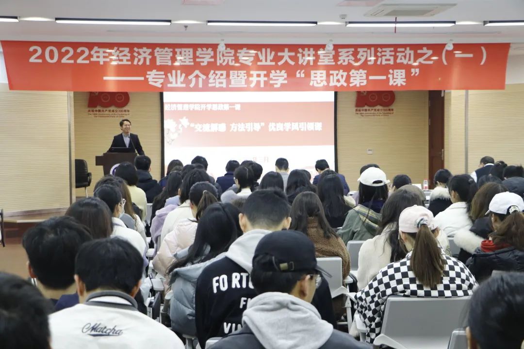 为落实立德树人根本任务,全面提升学院人才培养水平,逐步构建起完善的以学生成长为中心的“个性化-模块化”的人才培养体系,从2020级开始,经济管理学院全面实施大类招生、大类培养机制。为帮助学生充分了解各本科专业,让更多学生可以根据自身的兴趣爱好及特长选择专业,2022年3月9日,经济管理学院启动专业大讲堂系列活动,第一阶段为专业宣讲,邀请专业教师就专业特色、发展方向、学科建设情况、教学情况、毕业生就业情况等进行介绍。