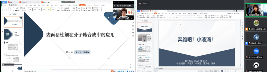 化工学院物理化学教学团队立足“学生中心”,以“价值塑造-知识传授-能力培养”三维课程目标为导向,研讨确定了物理化学课程教学标准,确保同一类课程的平行班授课质量一致。线上教学采用腾讯会议“直播课堂”为主,兼用爱课程平台“物理化学MOOC”(中、英文版)及其“慕课堂”智慧教学软件、QQ班级群为辅助手段,通过腾讯会议“面对面”交流、MOOC“闯关式”任务、“慕课堂”实时检测、QQ群课后讨论等方式,创设多样化互动教学场景,带动“云端”学生打破沉默、参与到教学过程中,强化学习氛围、提升教学效果。特别是在疫情反复、教师始终无法返校的情况下,积极关注学生们的心理疲惫期和学习懈怠情绪,利用课前、课间休息时间,与学生聊天、播放经典乐曲、让学生分享励志名言,倾尽真情,不断激励学生,一起共同坚守。
