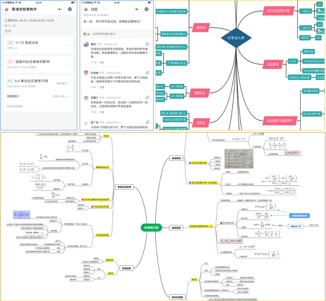 王旭珍教授利用慕课堂进行全员讨论与检测练习;小组制作思维导图在课堂上分享
