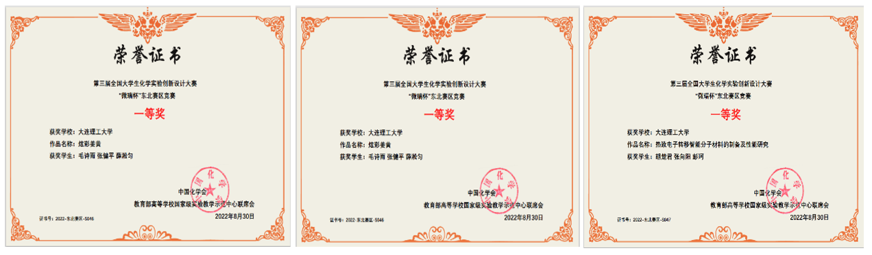 在此前进行的东北赛区竞赛中,我校推荐的三支代表队分别参加了新创实验、改进实验和科普实验三个赛道的比赛,均获得一等奖(“酯”争朝夕队,队员:李明泽、许怡璇、潘阳,指导教师:谭大志、杨金辉;姜你一军队,队员:毛诗雨、张健平、薛淞匀,指导教师:潘玉珍、张文珠;智能分子小分队,队员:胡楚君、张向阳、彭珂,指导教师:张艳娟、宿艳)。其中“酯”争朝夕队代表我校参加全国总决赛。