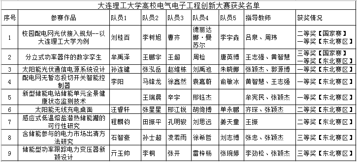 2022年9月15日至17日,第一届高校电气电子工程创新大赛全国总决赛在北京举行。我校9支参赛队伍依托电气创新实践基地,历时半年,全部获奖,取得了国家赛二等奖、三等奖各1项,东北赛区一等奖5项、二等奖2项、三等奖2项的优异成绩。指导教师吕泉、周玮两位老师荣获大赛优秀指导教师荣誉称号。