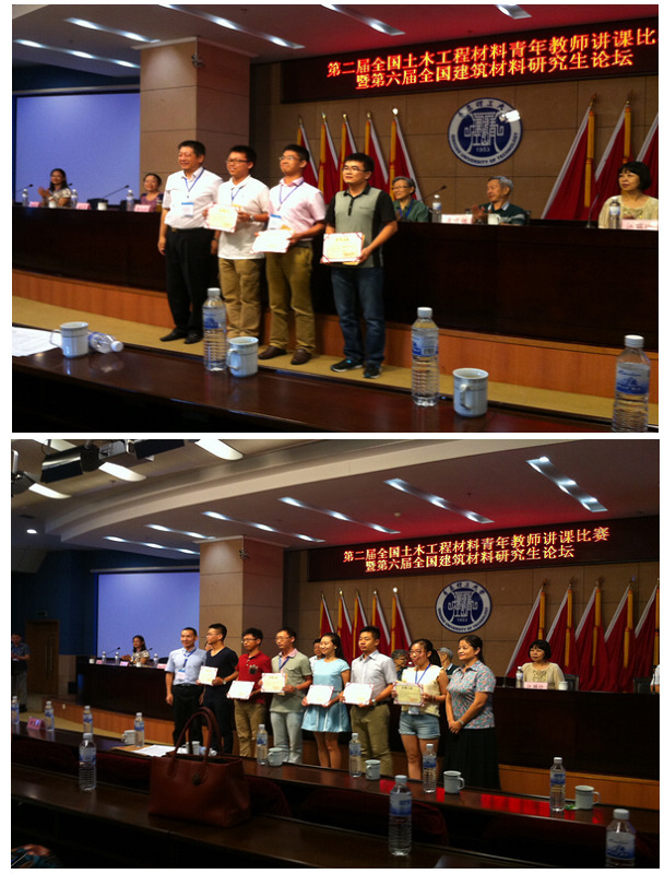 与本次讲课大赛同时举行的还有“第六届全国建筑材料研究生论坛”,常钧教授指导的研究生余鑫所做的“无水硫铝酸钙单矿物的水化反应研究”主题汇报,获研究生论坛一等奖,其报告内容被清华大学教授赞为“非常有意义的工作”;王宝民教授指导的博士生郭保林所做的“透水模板布是怎么起作用的”获研究生论坛二等奖,但其报告内容结合工程实践,演讲充满激情,获得论坛主席朋改非教授的高度评价。