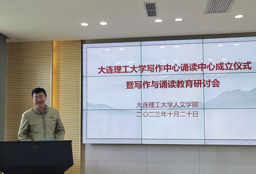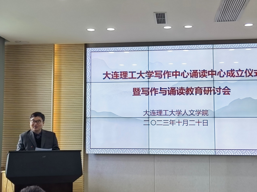 力学系副主任阎军教授致辞,指出两个中心的成立离不开校方的大力支持和兄弟院校的鼎力相助,如今的硕果累累是各方共同努力,尤其是人文学院长久地在写作与诵读课程耕耘的结果。当前,很多理工科学生囿于自身专业领域,不注重人文素养,导致语言表达和沟通难以提升,“人文大工”建设任重而道远。阎军指出,培养学生的人文素养不仅是文学院系的追求,更是理工科院系的不可忽略的重要方面。写作与诵读的相关课程的开设,是提高全体学生人文综合素质的重要一步,要将该课程在全校有序铺开,循序渐进开展课程体系建设,打造更多的国家级一流课程。为培养高素质人才,实现大连振兴、辽宁振兴做出新的贡献。