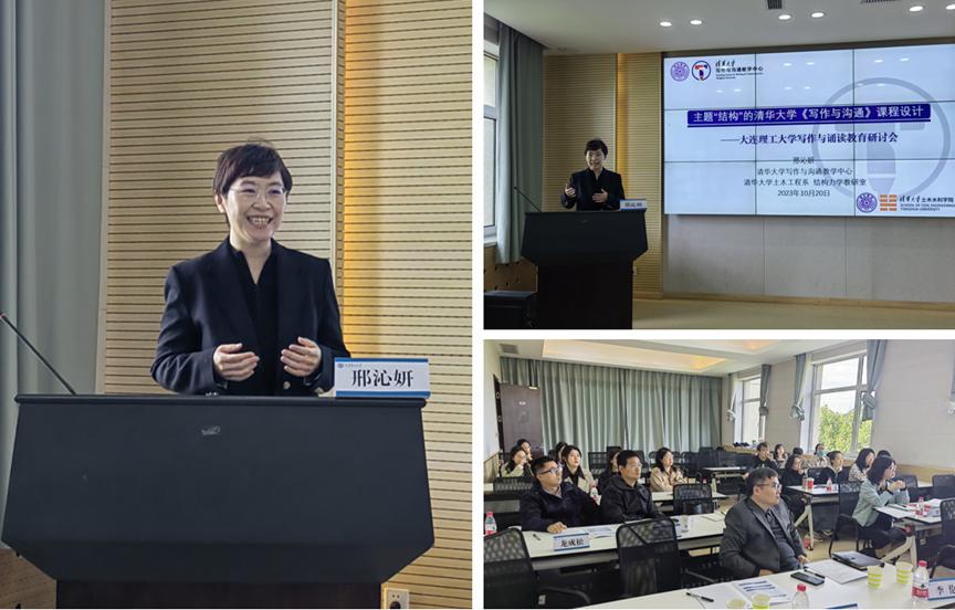 中心成立仪式结束后,写作与诵读教育研讨会正式开始。研讨会上半场,清华大学教学名师、土木水利学院教授邢沁妍进行了题为《主题“结构”的清华大学<写作与沟通>课程设计》的专题报告。邢沁妍教授从建课历程、教学理念思考和实践、教学内容设计、教学评价和小结等几个方面,对清华大学《写作与沟通》课程进行了详尽的介绍。互动环节,与会教师与邢老师展开热烈交流,邢老师的精彩报告为我校相关课程建设提供了宝贵经验。