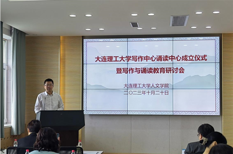 首先,夏远景副处长致辞,对大连理工大学成立写作、诵读中心表达了热烈的祝贺。夏远景表示,大连理工大学具备天然的“文理工艺”交叉融合的条件,科学技术与人文之间呈现出集成创新、融合发展的交叉化发展态势,这为写作沟通、经典诵读类课程实现培养行业领军人才的目标打下坚实的基础。写作中心、诵读中心的成立,将更有助于培养理工科学生的人文素质和写作能力。夏远景指出,写作中心、诵读中心未来应进一步整合资源,构建我校写作、诵读课程体系;应大力建设在线资料库,为师生提供集经典诵读、研究、展示、学习、培训、评价、交流等多功能于一体的多媒体传播平台;应进一步发挥人文学院的学科优势,通过人文讲坛、读书会、写作大赛、诵读大赛等活动,提高学生的批判性思维能力和创新能力,为新时代中国特色社会主义培养德才兼备的高素质人才。