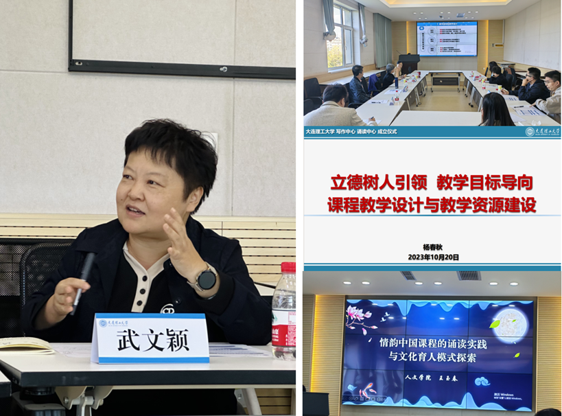 10月20日,大连理工大学“写作中心”“诵读中心”成立仪式暨写作与诵读教育研讨会,在我校厚德楼610会议室隆重召开。教务处副处长夏远景、清华大学教学名师土木水利学院教授邢沁妍、教育部长江学者力学系副主任阎军、宝钢优秀教师奖获得者力学系教授杨春秋、人文学院院长李伦、人文学院副院长武文颖、丁占英以及中文系全体教师、人文学院师生代表出席会议。