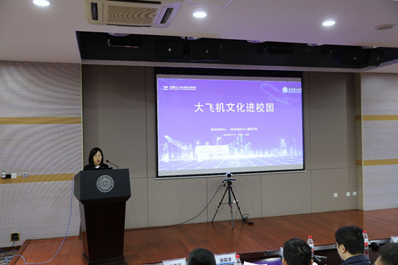 随后,上海飞机设计研究院飞机机械动力工程技术所所长张春秀致辞,她简要介绍了中国商用大飞机的“诞生地”——上海飞机设计研究院的基本情况,回溯了大飞机项目的发展和我校在此过程中提供的重要技术和人才支撑,希望通过此次活动,使同学们对大飞机故事、大飞机文化和大飞机精神有所了解,并鼓励同学们能够积极投身到国产大飞机研发的事业中。