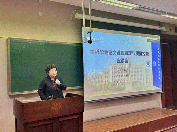 随后,武文颖副院长介绍本年度毕业论文的工作安排。她指出,毕业论文是培养本科生的创新精神和科学研究能力的“收官之战”,学院将加强对毕业论文选题、开题、答辩等环节的全过程管理。会议上,武文颖副院长为毕业生详细解读了毕业论文的选题、撰写、中期检查和答辩等各个环节的质量评审要求和注意事项,她提醒毕业生们端正学术态度,确保毕业论文工作顺利完成,为自己的大学时代画上圆满的句号。