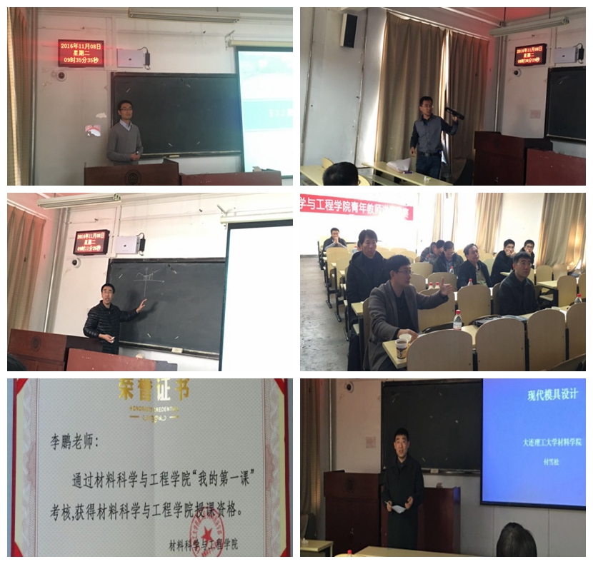 近日,材料科学与工程学院 “我的第一课”暨青年教师讲课竞赛在材料馆213举行,本次竞赛有6名青年教师参加。王同敏教授、齐民教授、曹志强教授、张贵锋教授、王轶农教授、叶飞教授担任本次竞赛的评委,会议由教学副院长黄昊教授主持。