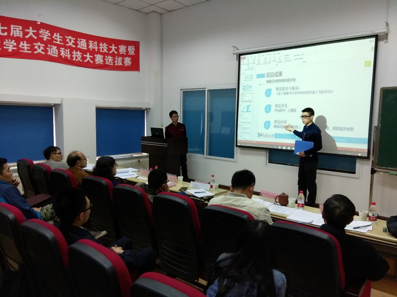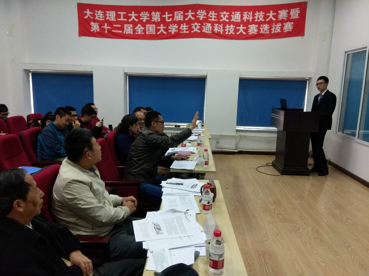 2017年4月5日下午,大连理工大学第七届大学生交通科技大赛决赛暨第十二届全国大学生交通科技大赛选拔赛答辩在综合实验4号楼六楼会议室成功举行。本次赛事在教务处和创新实验学院的支持下由建设工程学部交通运输学院承办,畅行交通学术社团组织。本次交通科技大赛以“智能互通”为主题,内容涵盖了交通运输规划与管理、交通信息工程及控制等四方面,旨在培养大学生的创新精神和实践能力,并选拔出高水平作品代表我校参加第十二届全国大学生交通科技大赛。