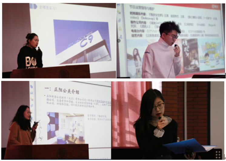 这是一个传统媒体与新媒体激烈碰撞的时代,更是一个“内容为王”的时代。广播电视学2015级的36名同学带着自己精心设计的海报、幻灯片和精彩的演讲,分享了各自在各类实习工作中的经历和感悟,展示了各自的成长和蜕变,表达了对未来职业发展的期许与渴望。那些无法前来现场答辩的同学也提前制作了富有创意的音视频多媒体,生动展示了他们的实习生活。