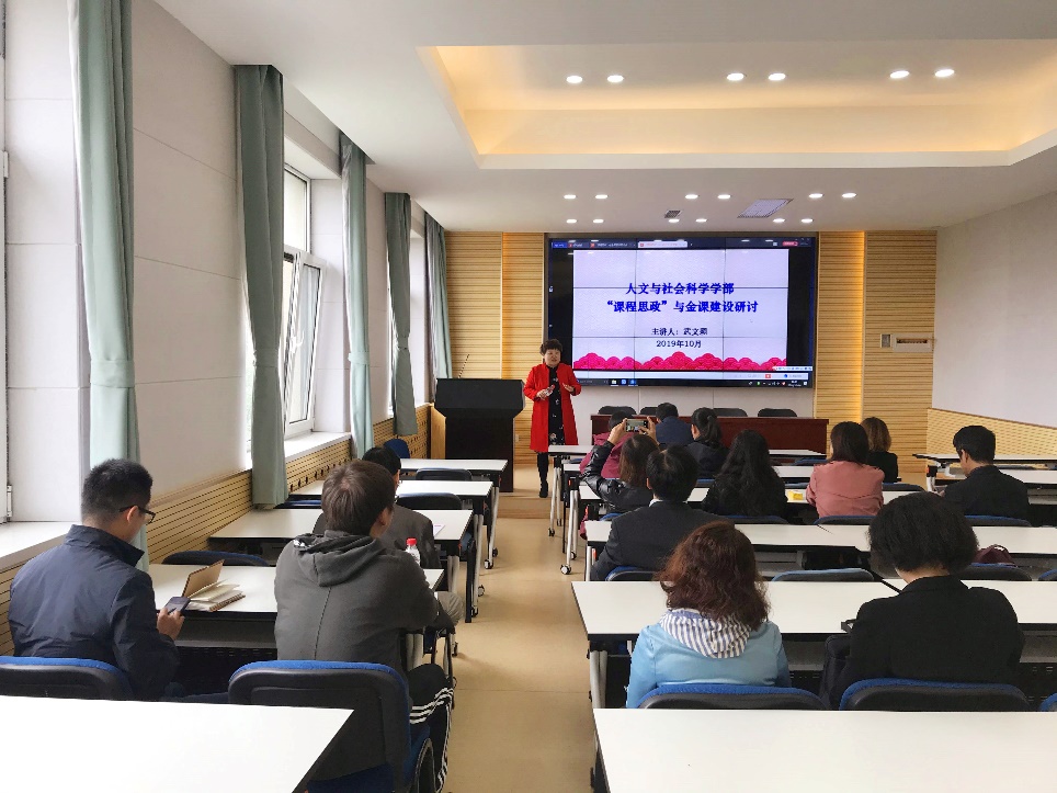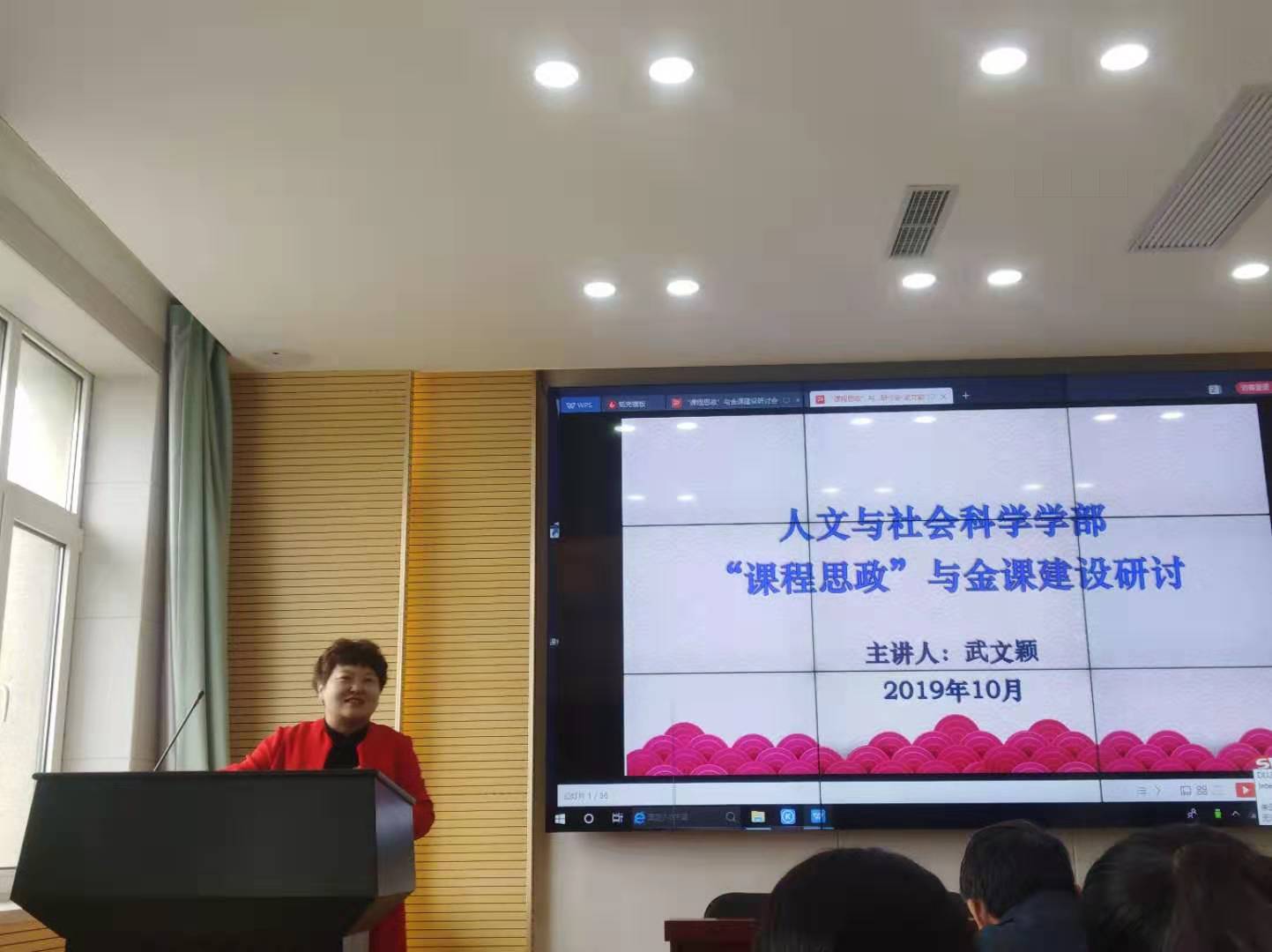 为深入贯彻落实高校思想政治工作会议和全国教育大会精神,充分发挥课堂教学育人主渠道、主阵地的作用,挖掘和丰富专业课程育人内涵,提升专业课教师“课程思政”教学能力,10月16日中午,人文与社会科学学部在文科楼610举办“课程思政”与金课建设午间沙龙,此次沙龙活动由学部副部长武文颖主持和主讲。