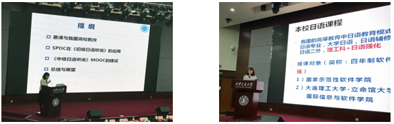 开发区校区外语教育中心主任韩兰灵老师作为特邀嘉宾,在大会上进行了题为“《日语听说》从SPOC到MOOC的建设与应用”的特别演讲。《日语听说》是大连理工大学的优秀课程,得益于丰厚的积累和与时俱进的学习精神,团队率先致力于在线课程的建设与应用。依托辽宁省精品资源共享课建设项目的《初级日语听说》,以SPOC的模式实施混合式教学,正在大连理工大学金课建设平台上实施第四轮,教学理念和效果得到了督导专家与学生的一致好评。在此基础之上,依托国家质量工程项目建设了《中级日语听说》,建成之后同时在“中国大学慕课”和“学堂在线”两大平台上线,面向社会学习者开放,开创了日语实践类课程慕课建设和应用的先河。