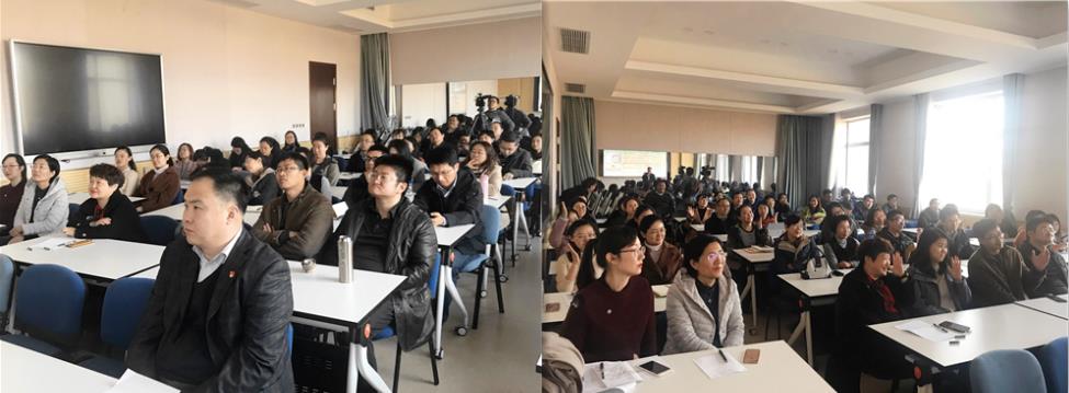 讲座上半场,董为人教授以医学专业课程为例,阐述了“课程思政”的概念,即在专业课程中融入思政理念、时代精神和健康中国,其终极目的就是育人;“课程思政”的实施路径多元化,可以在讲课的开头、结尾、作业、知识点甚至幻灯片设计等各环节,按照“四个”结合(知识与实验实践、生活健康、临床疾病、科学研究相结合)、多学科交叉融合等方式无缝融入,遵循“适合、适时、适度”原则,达到“潜移默化”、“润物无声”的效果。他以饱满的热情和风趣的语言生动地讲解了其提出的“混合式教(导)+学理念”的理论背景和现实意义,基于此提出了金课堂概念。他说,“课堂教学是提高教学质量的最后一公里,是教育教学的主阵地和主战场。高校要以教师发展为中心,倾心打造专业课程思政金课堂,实现立德树人根本任务。”为此,要从教育理念进行变革,根据国情、校情、学情,有机融合PBL、CBL、TBL、慕课、翻转课堂等新型教学手段,以学生发展和学习为中心,在教师引导下的个人学习和小组协作探究学习相结合,实时融入形成性评价和即时反馈,使学生全员全程参与教学活动,以金课的“两性一度”标准与新时代中国高等教育的根本目标来打造各专业的课程思政金课堂。