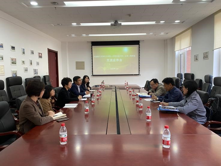化工学院化学系主任纪敏、基础化学实验中心副主任宿艳、催化化学与工程系刘颖雅分别就应用化学专业建设、基础化学课程体系、仿真实验和催化专业建设等方面进行了介绍;并与中国石油大学(北京)理学院张潇副院长,宋昭峥系主任对相关情况进行了深入交流,相互借鉴办学经验,探讨共谋发展合作空间。