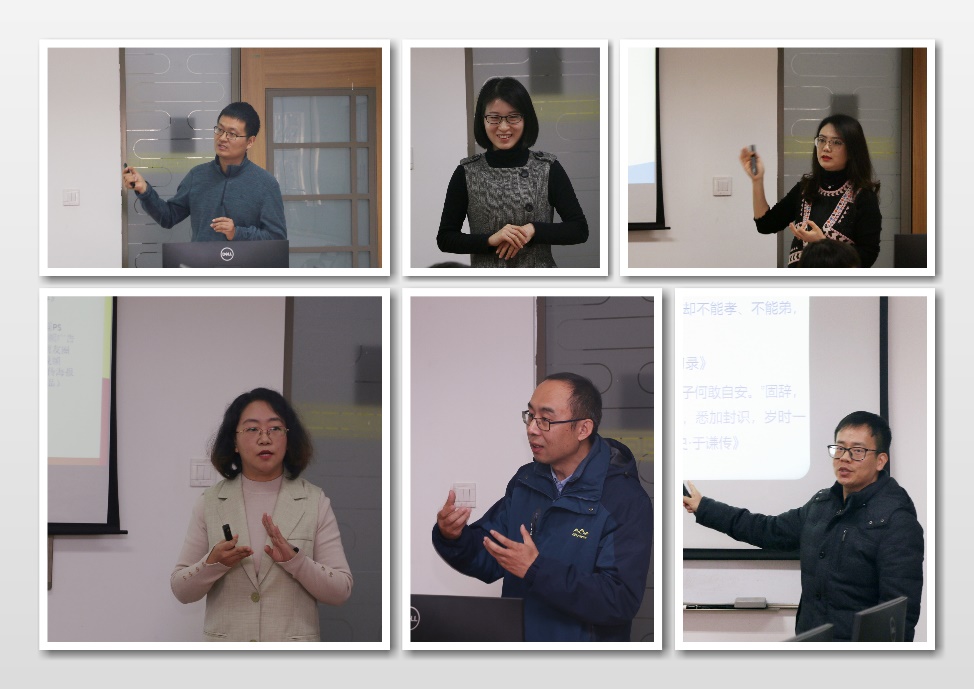6位参赛教师经过赛前精心的准备,由徐强老师基于《孔子的哲学》主题、柴玥老师基于《传媒机构中的记者形象》主题、赵团员老师基于《<论语>选读》主题、韩琳老师基于《中国动画电影音乐的民族特征和文化品格——<大闹天宫><西游记之大圣归来>为例》主题、王磊老师基于《“知行合一”说》主题、郄子君老师基于《应急处置与救援——信息发布机制》主题分别进行了10分钟的说课展示,阐释了教学中对“课程思政”元素的精心设计,表现出了不同特色的教学风格。
