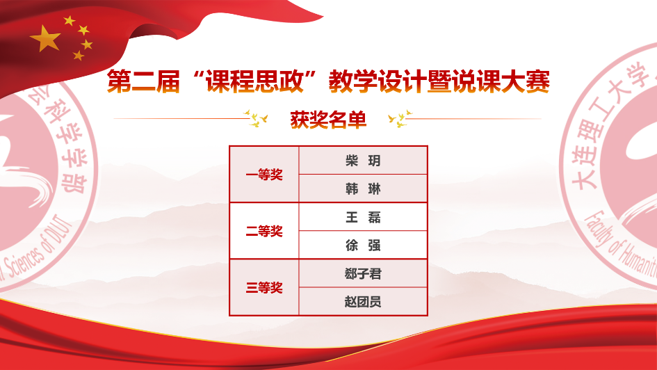 杨春秋教授提出“‘课程思政’对所有人都是新课题,参赛教师都是在摸着石头过河,很不容易”;余虹教授指出“‘课程思政’要恰到好处的切入,找准思政元素,把握好‘度’”;孙效里教授则告诫教师们在提炼“课程思政”元素时一定要注意高度的升华。最终柴玥、韩琳两位教师获得此次比赛的一等奖。
