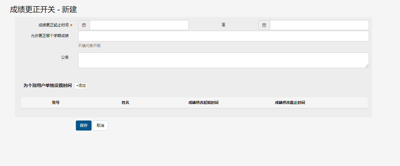 1、该模块可以设置允许成绩更正的起止时间、允许更正哪个学期成绩;
