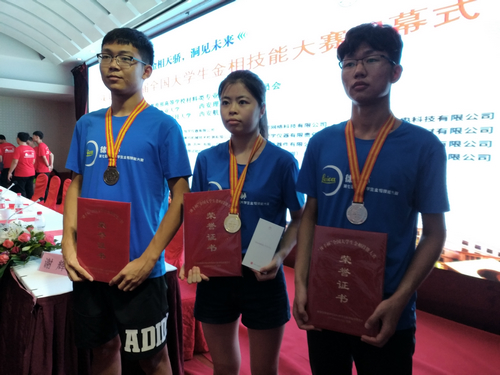 获奖选手(材料学院本科生),右起:田雨祁(二等奖),李敏(一等奖),李喆(三等奖)