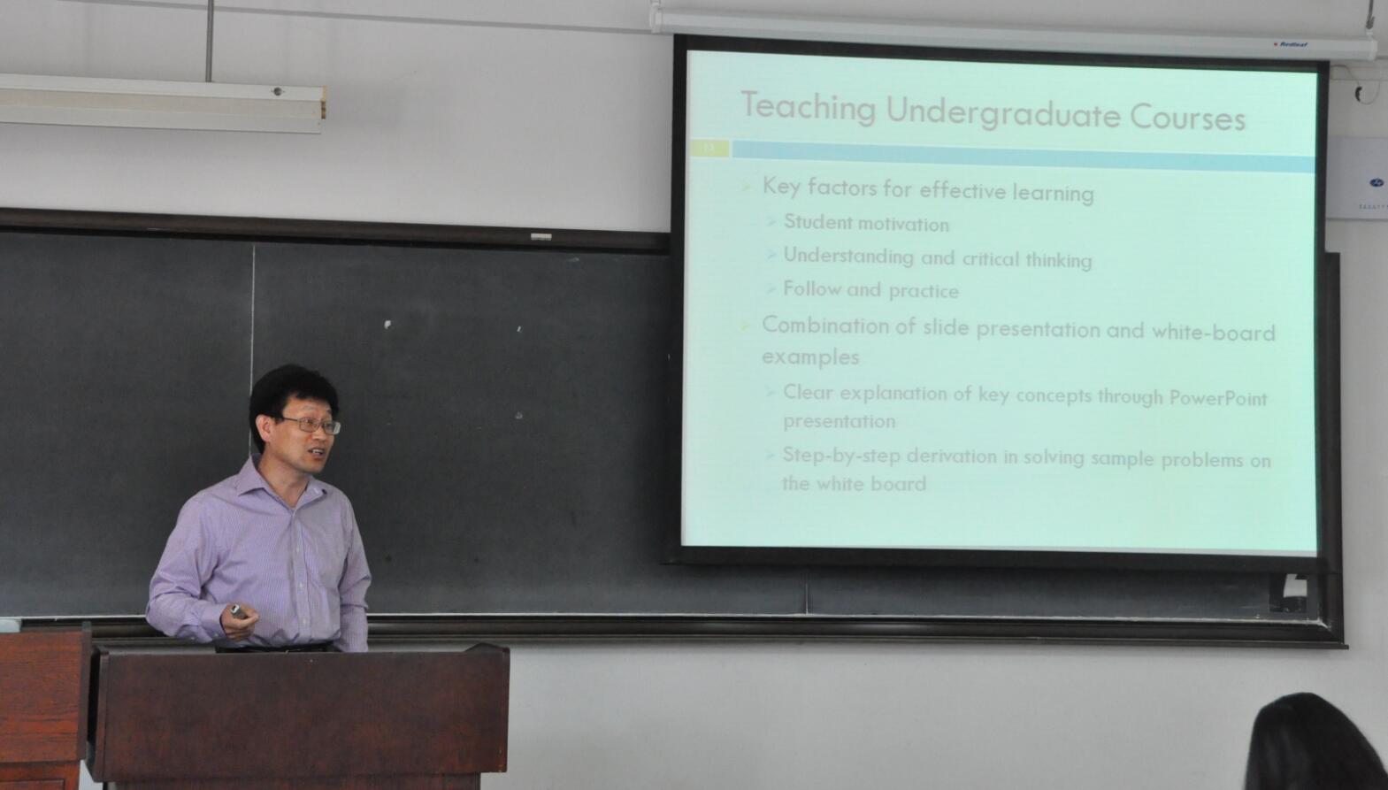 李大文博士结合ABET认证对毕业生能力的相关要求,从学情分析、教学课件、板书、问题的引入、学习效果考查等各个方面,详细阐述了如何进行教学设计以提升教学的有效性。其中,“Jeopardy Review”等诸多生动详实的教学实例让参加讲座的青年教师大开眼界,受益匪浅。此次讲座有力促进了我校教师对“学生中心”、“有效教学”等教育教学理念的理解,提升了我校教师教学设计能力。