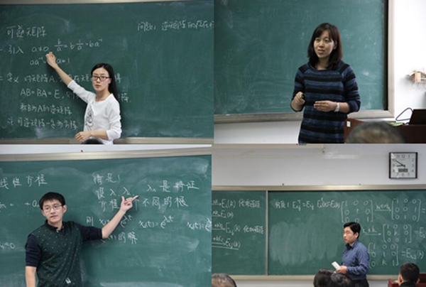 在比赛过程中,19位教师精心筹划、认真准备,参赛讲授内容涉及数学分析、高等代数、微积分、线性代数、概率论与数理统计等数学专业课程和公共数学课程。虽然讲课的时间有限,但老师们各显其能,或依托课件展示、或板书说明,进行“课堂模拟”,充分展示个人的讲课技能和综合素质。各位评委们结合自身丰富的教学经验对参赛教师的讲课内容和讲课技巧做出了详细的点评和指导,提出了“讲课时要注意课件与板书相结合,用形象生动的方式将枯燥的数学知识传授给学生”、“控制讲课速度,勤与学生互动”、“增加多种解题方法的讲解”等众多中肯的建议。评委们还将自身对教学工作的体会和秘诀传授给青年教师,使他们受益匪浅。