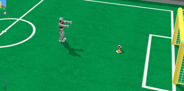 技术提示:利用webots中的虚拟足球场地的场景完成射门任务。如下图所示。相关资料及技术交流加qq群495455956分享。