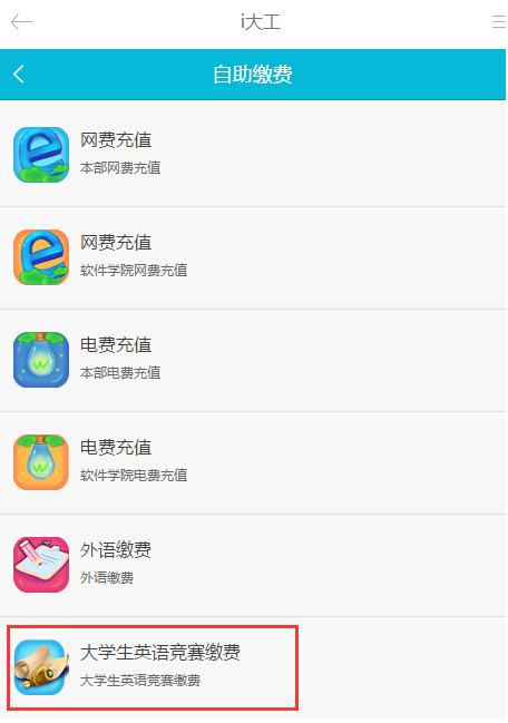 下载“i大工”APP或微信关注“i大工”(不在校园网环境下的学生可通过此方式进行),进入“i大工”首页,选择“玉兰卡”服务, 选择“自助缴费” 栏目下的“大学生英语竞赛缴费”,根据提示填写相关信息,包括玉兰卡密码等完成缴费。缴费成功后会弹出提示对话框,在“玉兰卡”的“流水查询”栏目中可查询缴费记录,有缴费记录表示报名缴费成功。