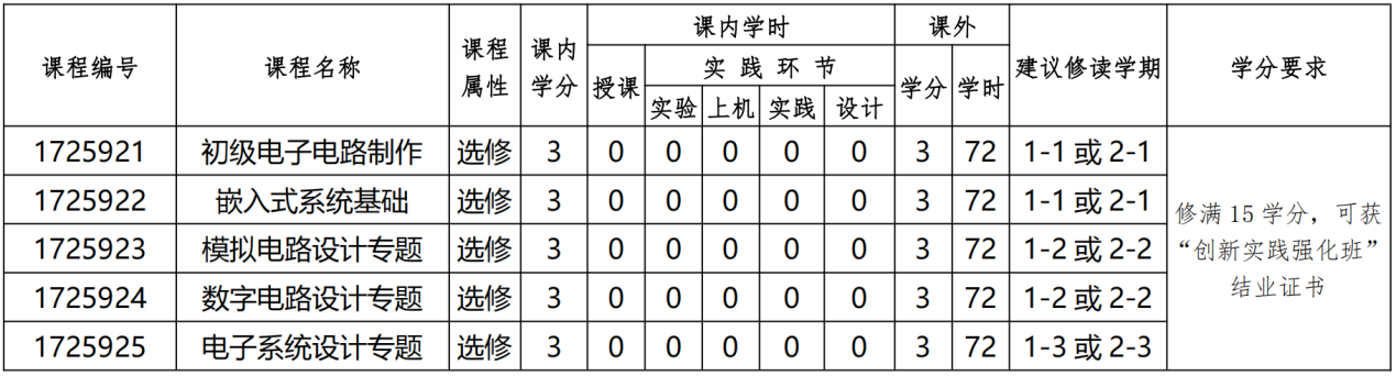1.创新实践强化班采用学分制,毕业前完成创新实践规定的5门课程,由学校颁发“创新实践强化班”结业证书。
